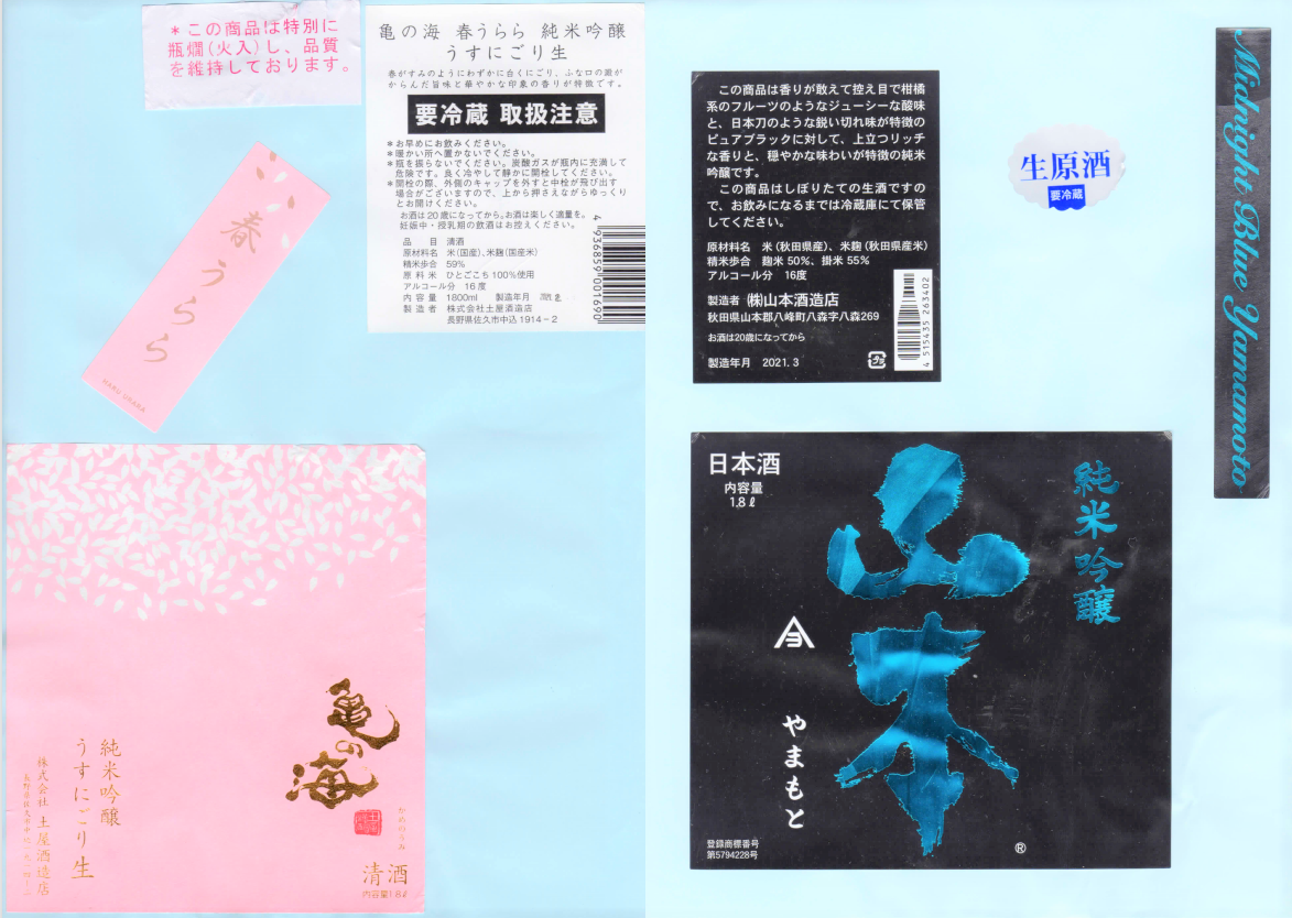 「酒の間」の土屋酒造店「亀の海」ラベルに追加、山本酒造店「山本」ラベルを追加しました。