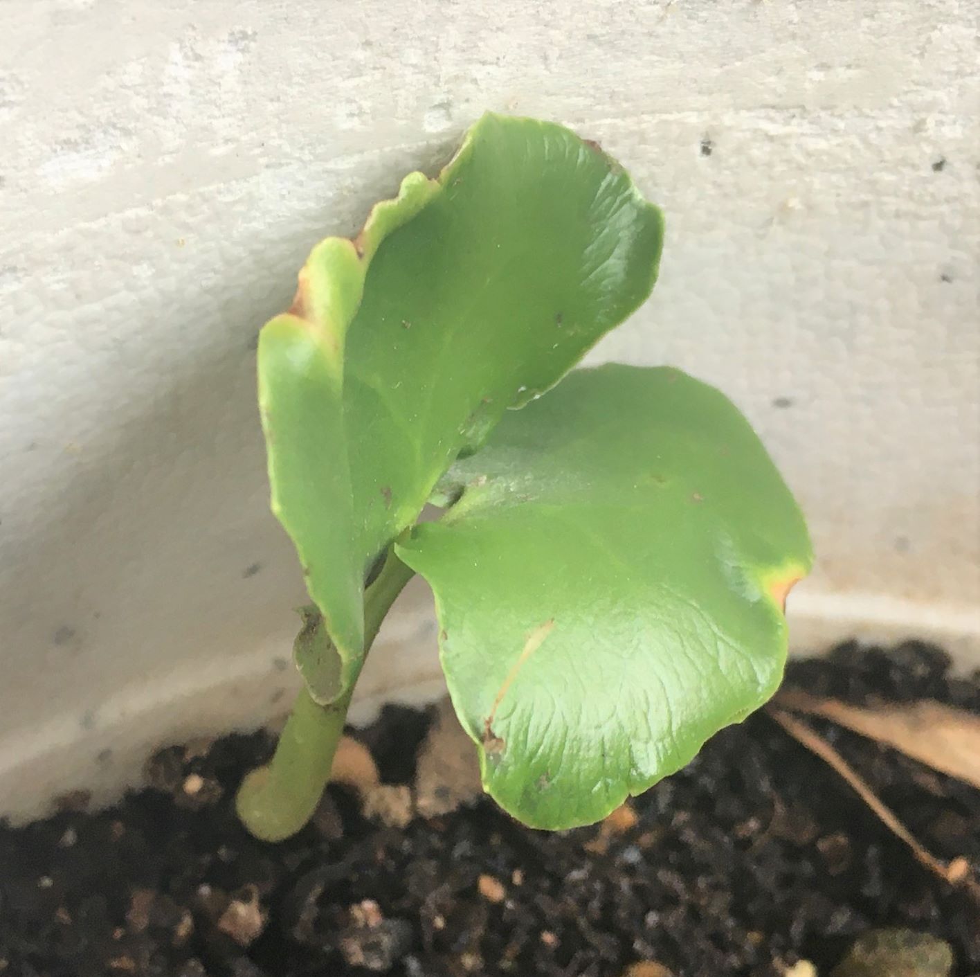 2月初めに植えてみた蝋梅の種から1つ芽が出ていました。