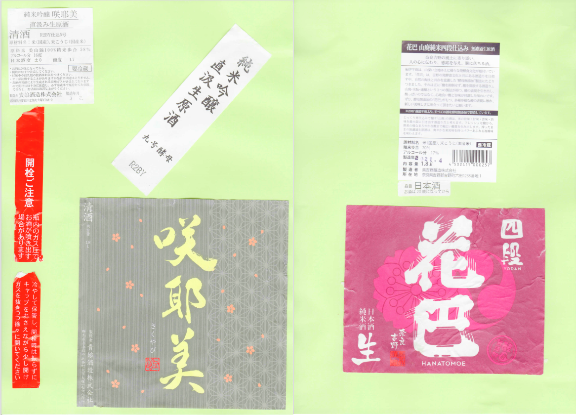 「酒の間」の貴娘酒造「咲耶美」ラベルに追加、美吉野醸造「花巴」ラベルを追加しました。