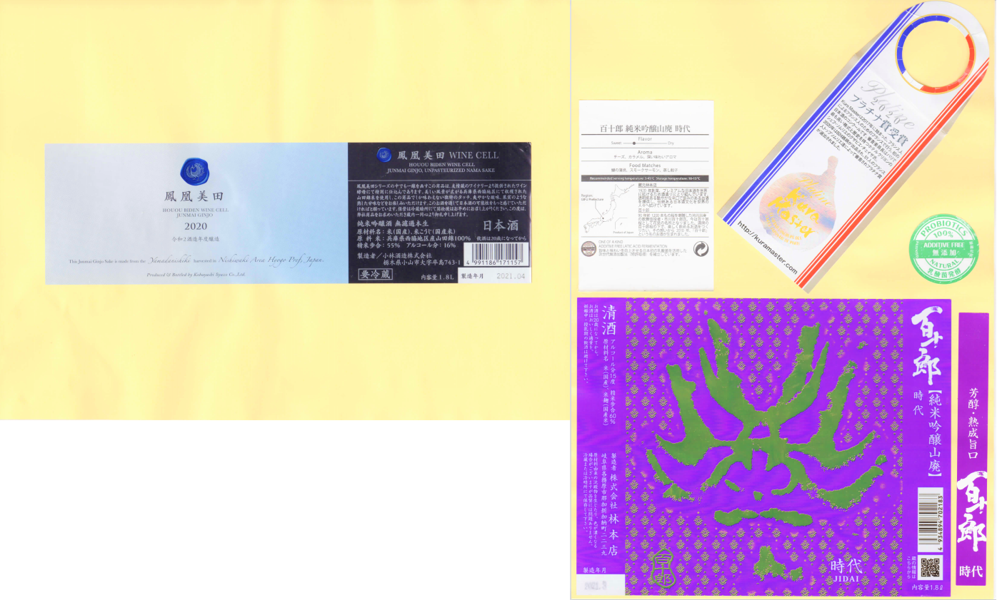 「酒の間」の小林酒造「鳳凰美田」ラベルと林本店「百十郎」ラベルに追加しました。