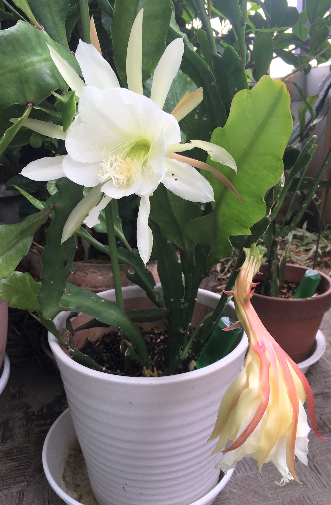 昨夜、孔雀サボテンのもう一つの蕾が開花しました。