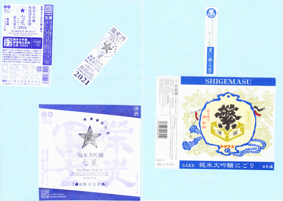 「酒の間」の冨士酒造「栄光冨士」ラベルに追加、高橋商店「繁枡」ラベルを追加しました。
