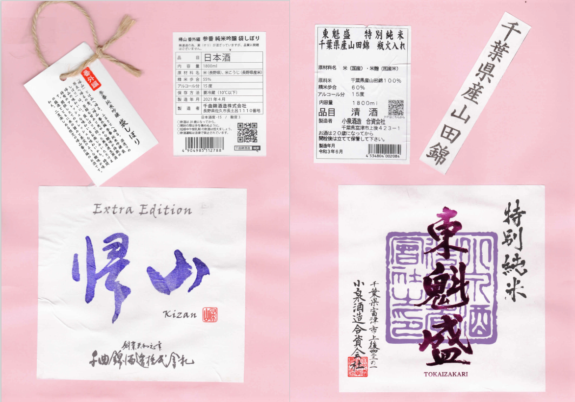 「酒の間」の千曲錦酒造「帰山」ラベルと小泉酒造「東魁盛」ラベルに追加しました。
