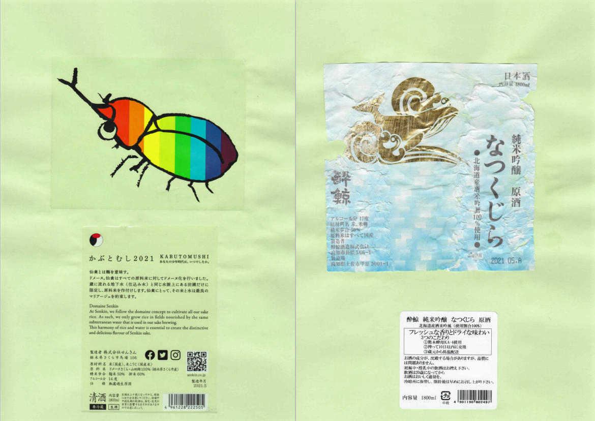「酒の間」のせんきん「仙禽」ラベルと酔鯨酒造「酔鯨」ラベルに追加しました。