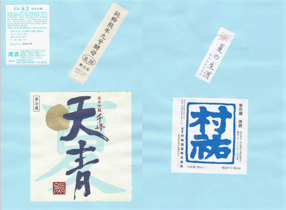「酒の間」の熊澤酒造「天青」ラベルに追加、村祐酒造「村祐」ラベルを追加しました。