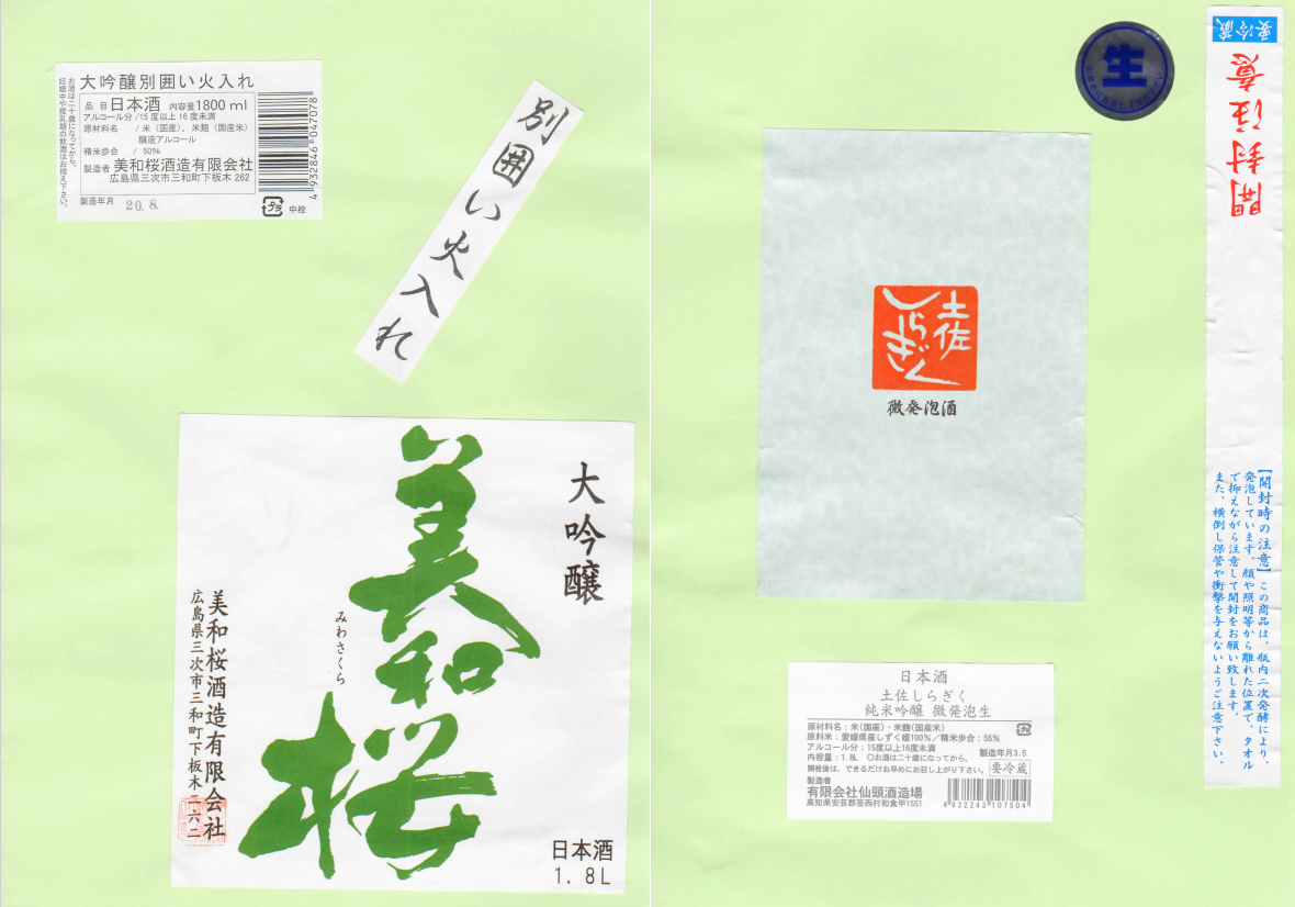 「酒の間」の美和桜酒造「美和桜」ラベルと仙頭酒造場「土佐しらぎく」ラベルに追加しました。