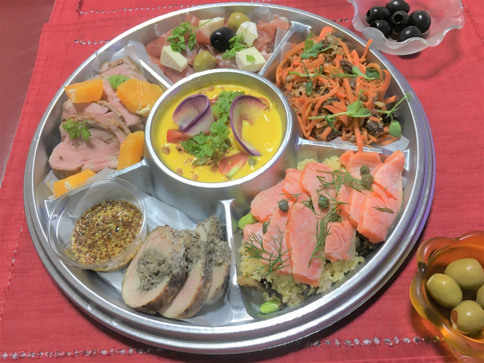 ③炙りサーモンのカルパッチョ 茸と枝豆のクスクス添え