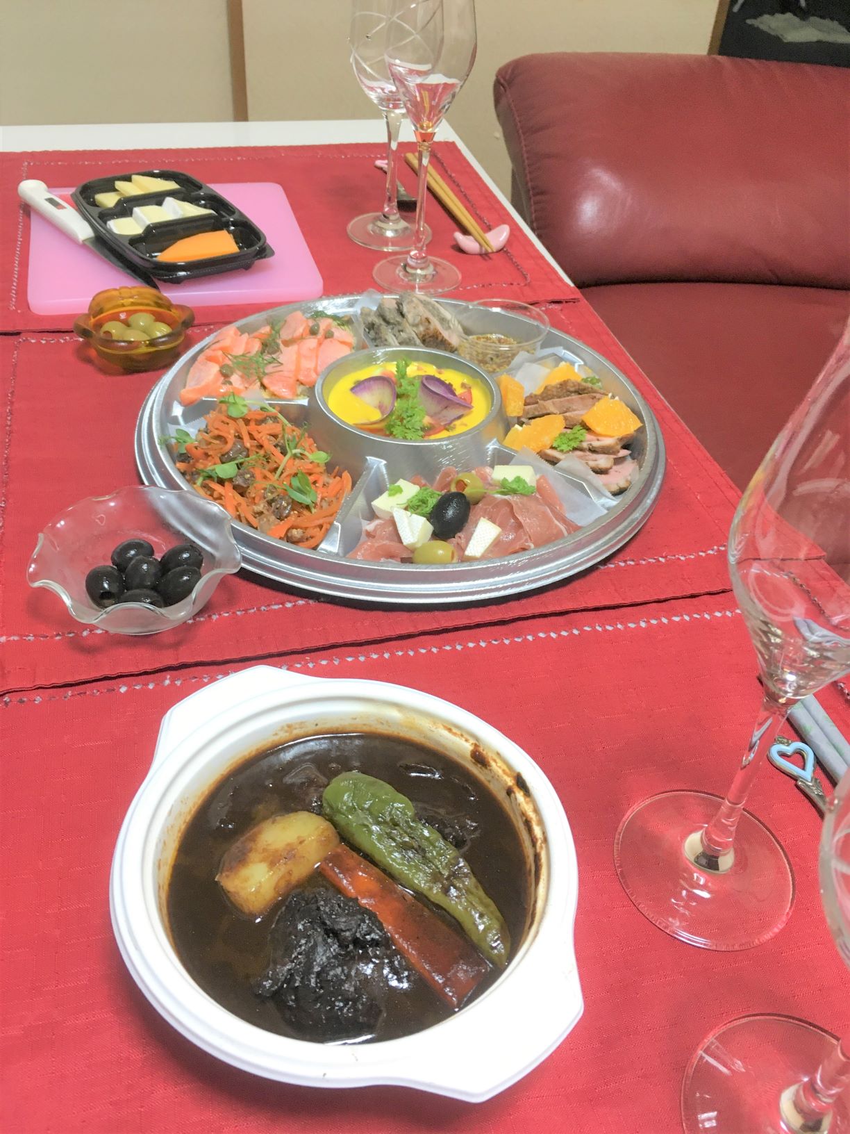 他には自宅にあったチーズを出して、スパークリングワインで乾杯!