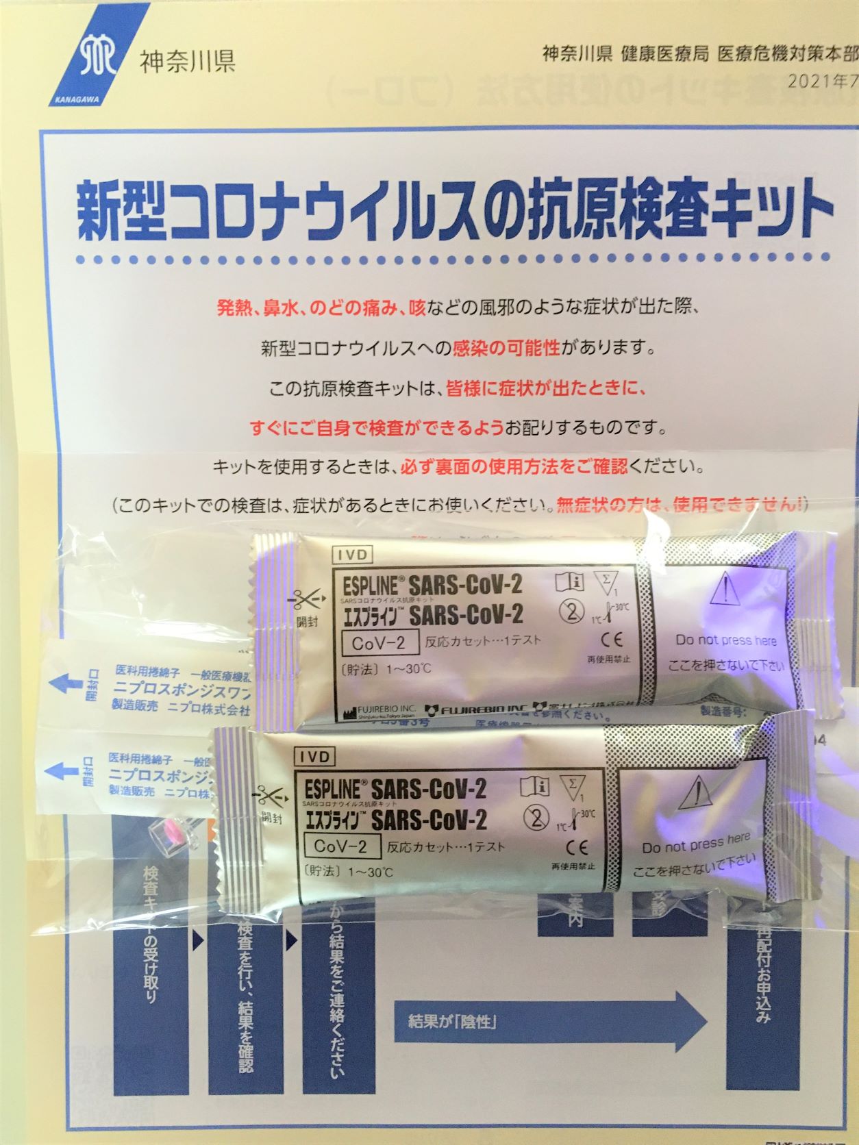 神奈川県が希望者に無料配布している抗原検査キットが届きました。