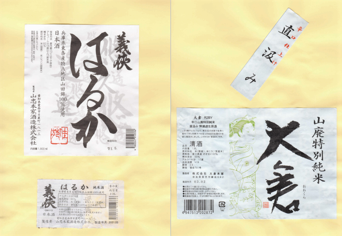 「酒の間」の山忠本家酒造「義侠」ラベルと大倉本家「大倉」ラベルに追加しました。
