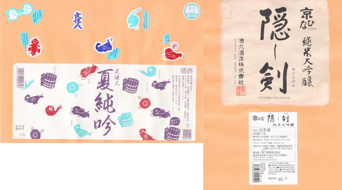 「酒の間」のアリサワ「文佳人」ラベルと酒六酒造「京ひな」ラベルに追加しました。
