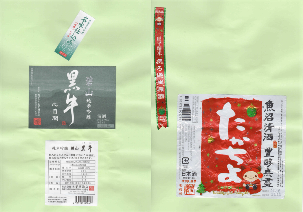 名手酒造店「黒牛」ラベルと高千代酒造「たかちよ」ラベルに追加しました。