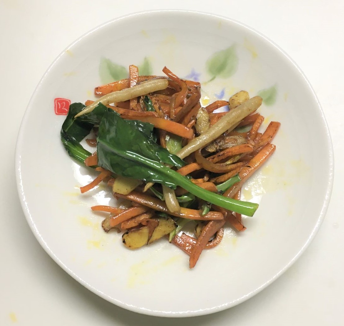 根はごぼうのようだとネットで見たので、きんぴらにしてみました。