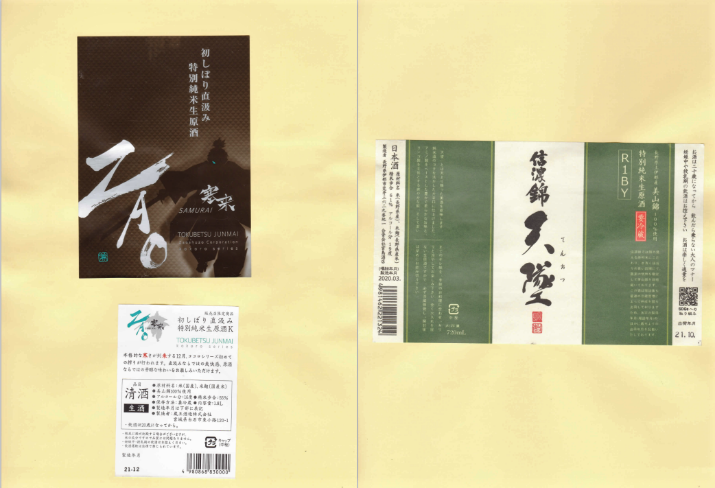 「酒の間」の蔵王酒造「ZAO」ラベルと宮島酒店「信濃錦」ラベルに追加しました。