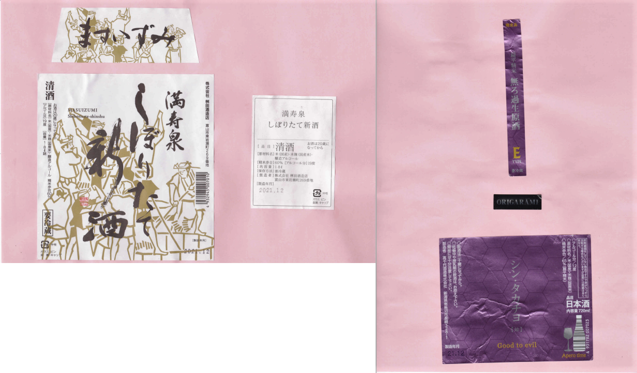 「酒の間」の桝田酒造店「満寿泉」ラベルと高千代酒造「たかちよ」ラベルに追加しました。