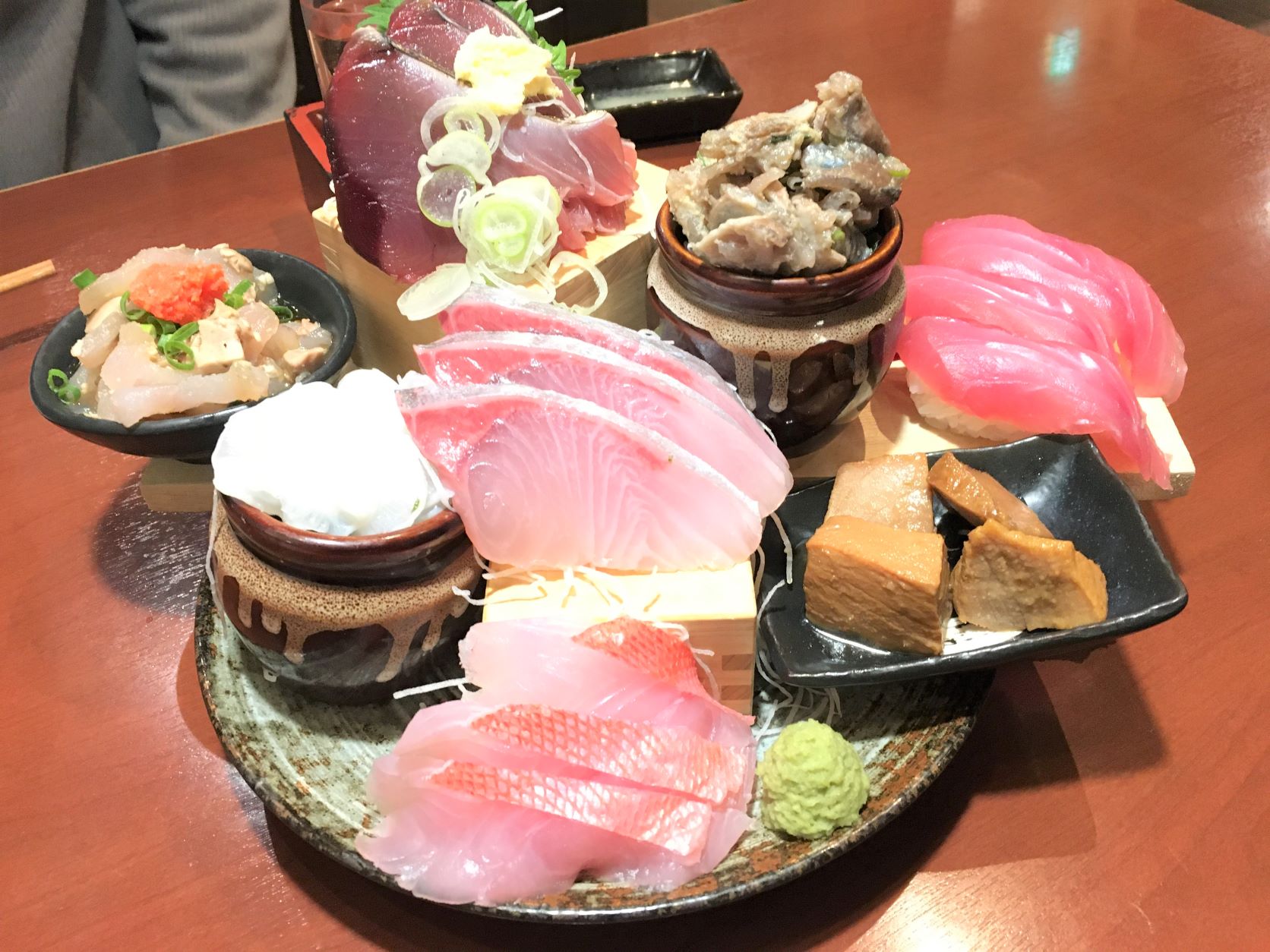カツオ・はまち・金目鯛・たこ(真っ白にしか見えないもの)の4点は、5点盛りに入りますよね。