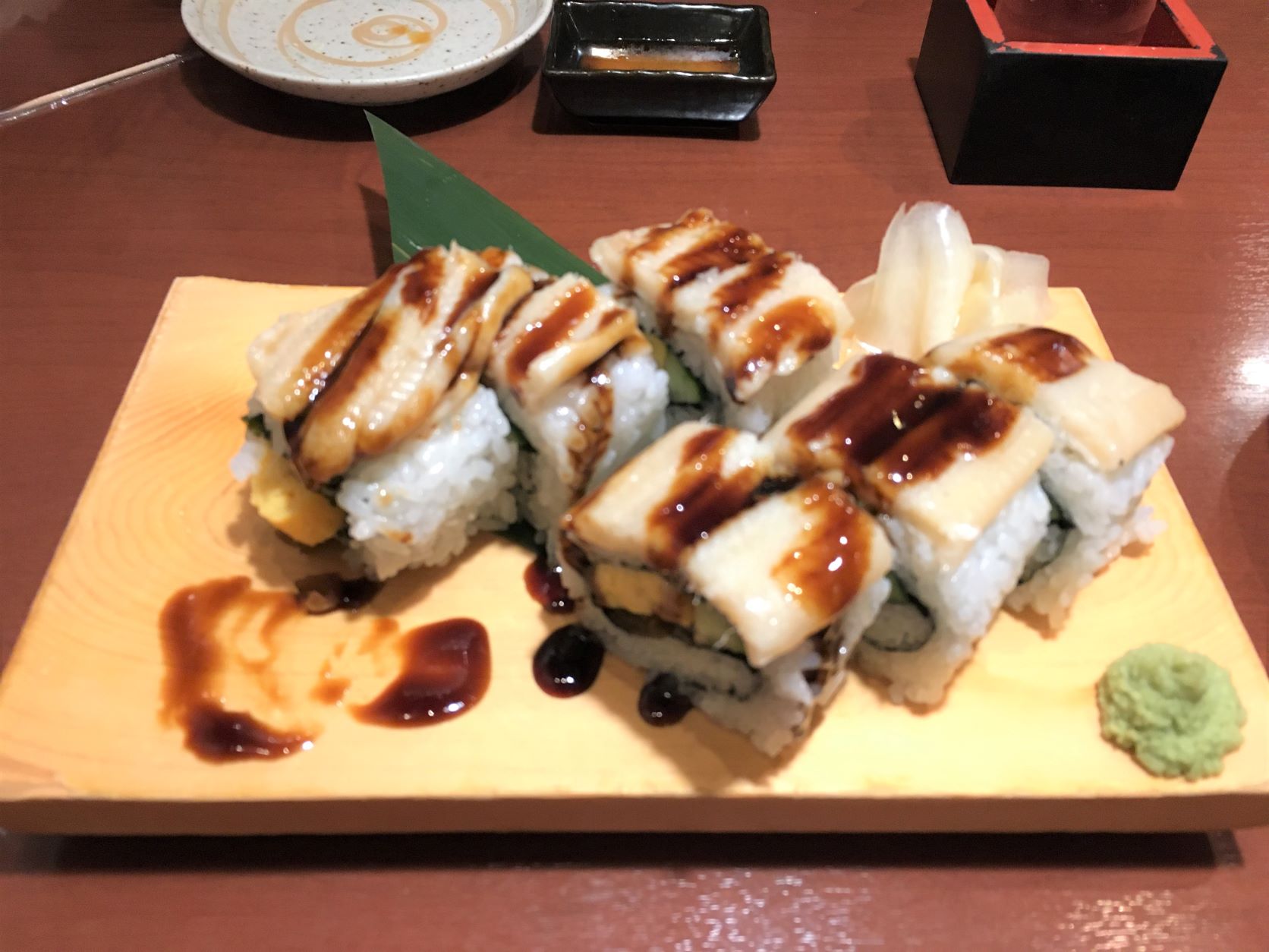 〆はアナゴの巻き寿司。