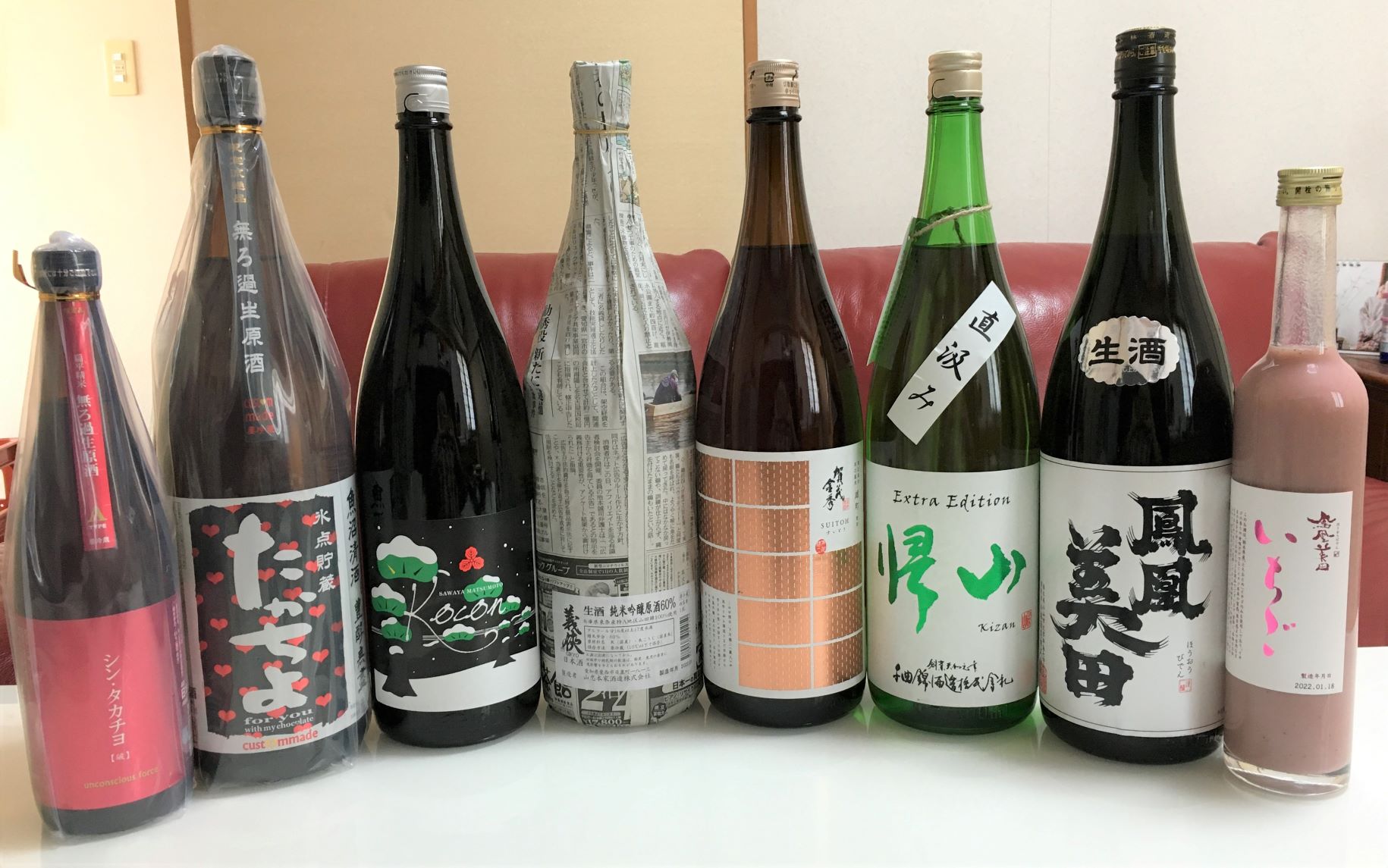 ※左から シン・タカチヨ・たかちよ・澤屋まつもと・義侠・賀茂金秀・帰山・鳳凰美田・鳳凰美田(いちご)