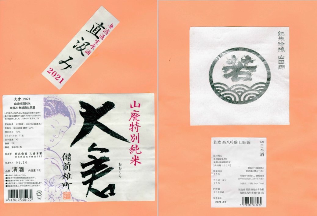 「酒の間」の大倉本家「大倉」ラベルと若波酒造「若波」ラベルに追加しました。