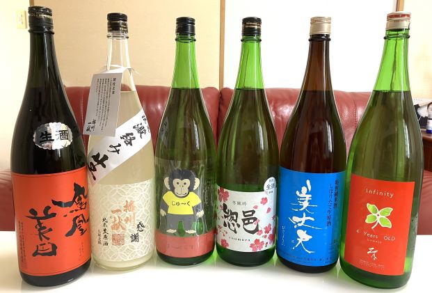 ※左から 鳳凰美田・播州一献・十九・惣邑・美丈夫・蔵王