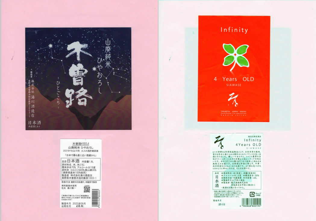 「酒の間」の湯川酒造店「木曽路」ラベルと蔵王酒造「蔵王」ラベルに追加しました。