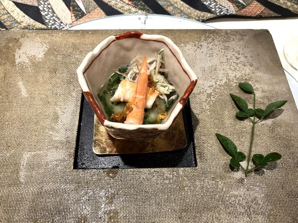 天然海老と秋茄子の煮凝り。
