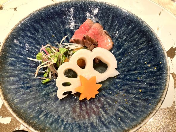 佐賀牛と季節野菜の炊き合わせ。