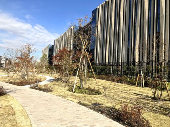 土地の一部をプロムナードにして、一般の人も歩けるようになっています。