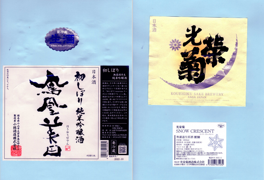 「酒の間」の小林酒造「鳳凰美田」ラベルと光栄菊酒造「光栄菊」ラベルに追加しました。