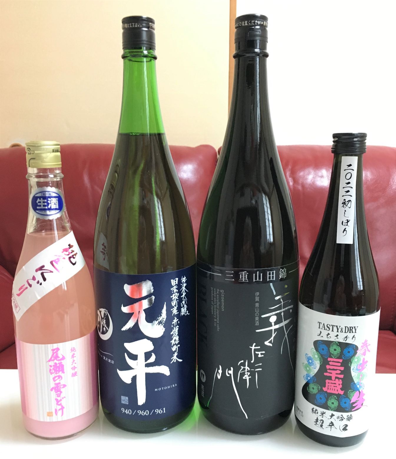 ※左から 尾瀬の雪どけ・雨後の月・義左衛門・三千盛