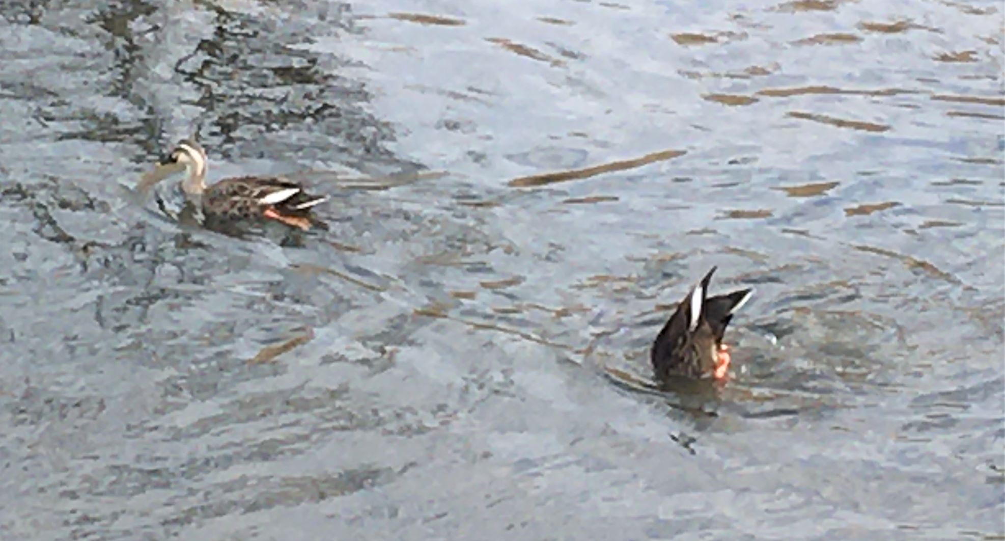 鴨って水深が深い所で獲物を狙う時(草?)ほぼ逆立ち状態になるんですね。