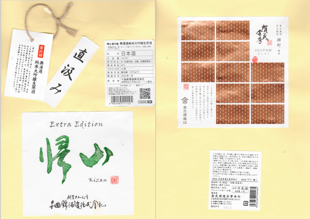 「酒の間」の千曲錦酒造「帰山」ラベルと金光酒造「賀茂金秀」ラベルに追加しました。