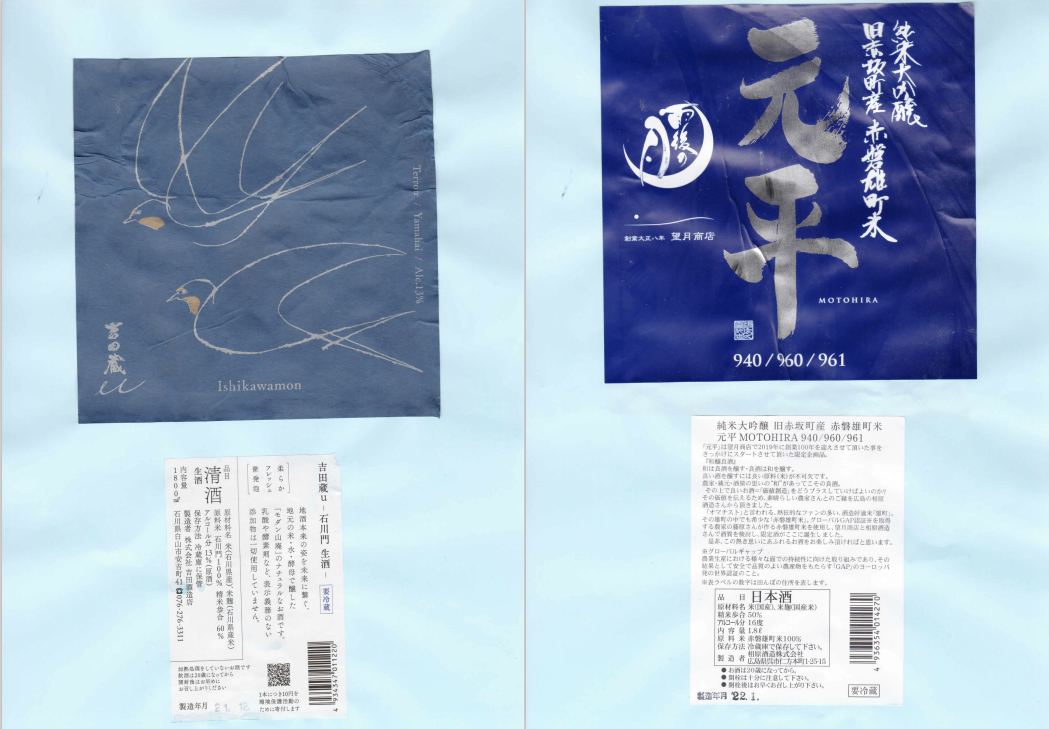 「酒の間」の吉田酒造店「手取川」ラベルと相原酒造「雨後の月」ラベルに追加しました。