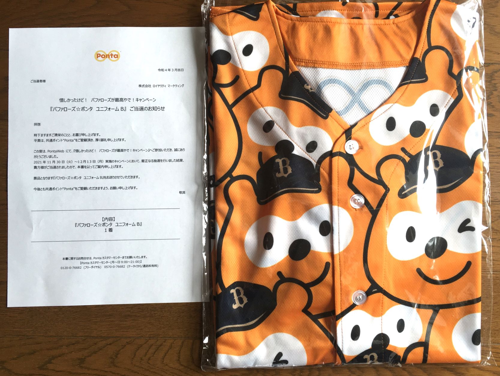 Pontaポイントの応募には外れたようですが、バッファローズのユニフォームが当たったようです。