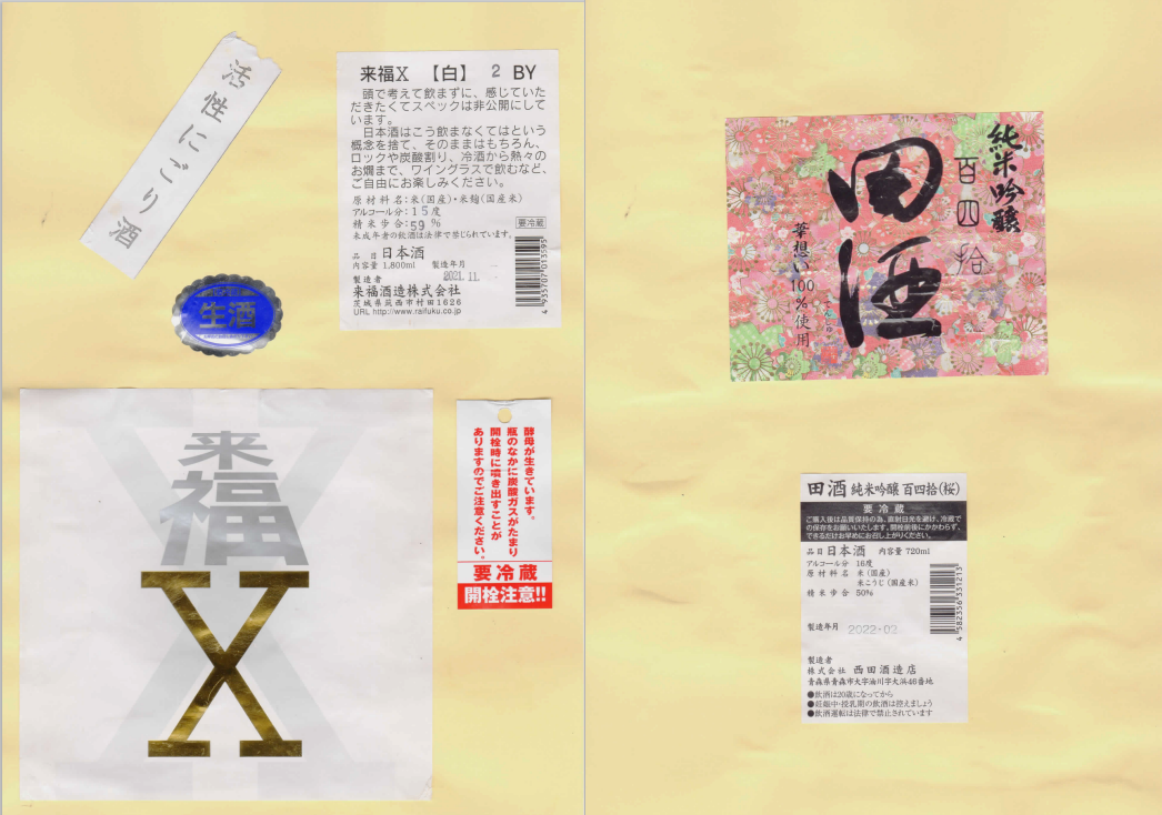「酒の間」の来福酒造「来福」ラベルと西田酒造店「田酒」ラベルに追加しました。