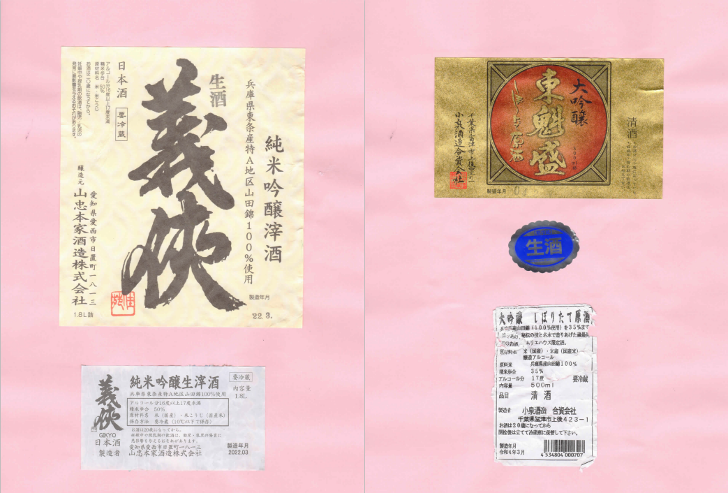 「酒の間」の山忠本家酒造「義侠」ラベルと小泉酒造「東魁盛」ラベルに追加しました。