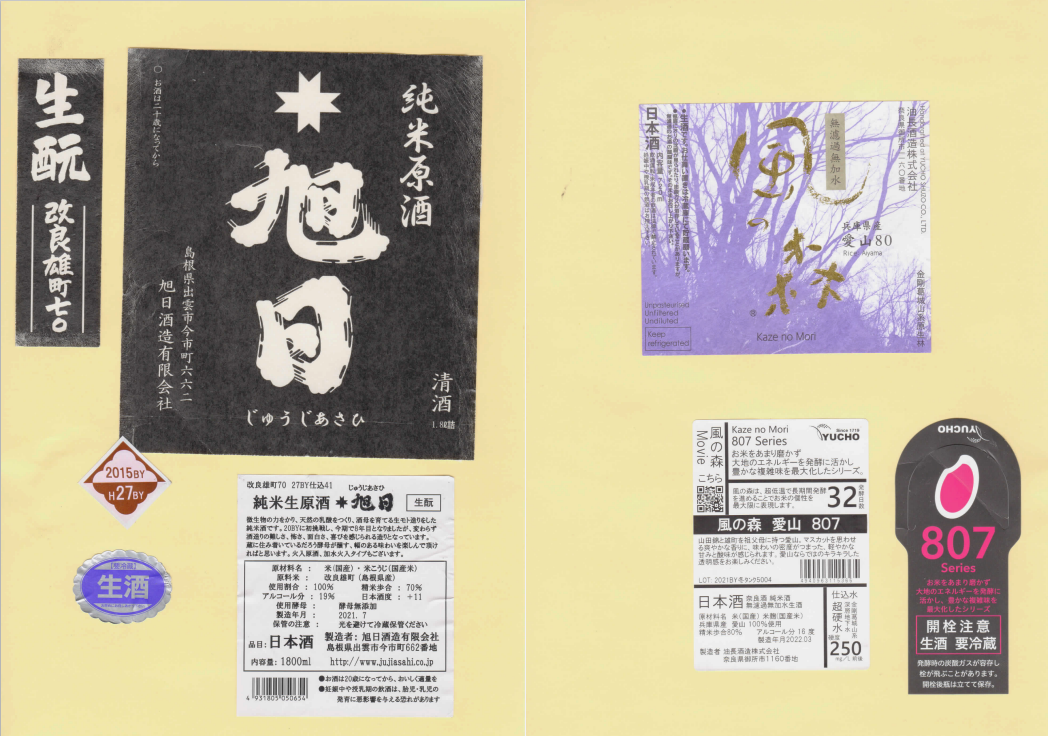 「酒の間」の旭日酒造「十旭日」ラベルと油長「風の森」ラベルを追加しました。