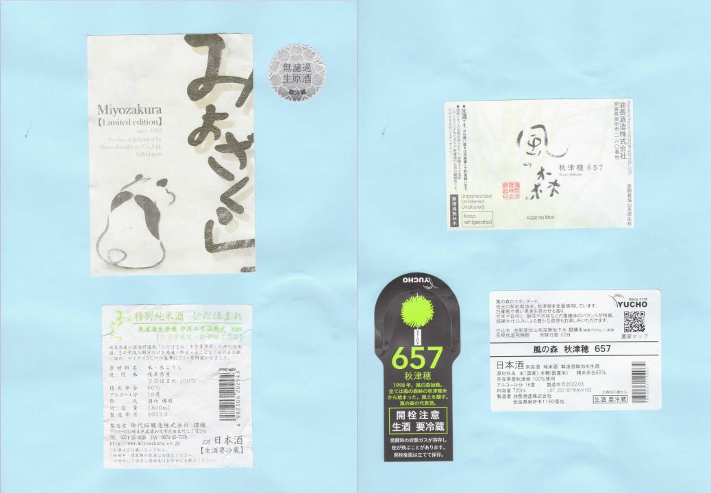 「酒の間」の御代桜醸造「御代桜」ラベルを追加、油長「風の森」ラベルに追加しました。