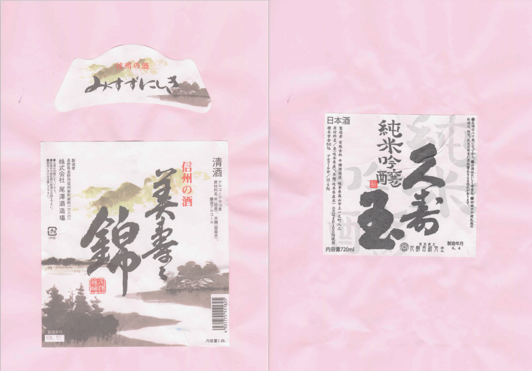 「酒の間」の尾澤酒造場「十九」ラベルと平瀬酒造店「久寿玉」ラベルに追加しました。