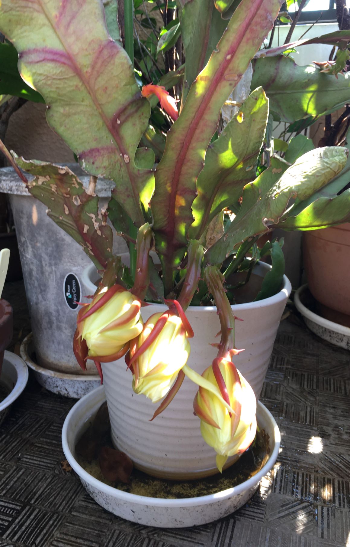 朝、前職の社長から頂いた孔雀サボテンが今日咲くぞ!と言いたげでした。