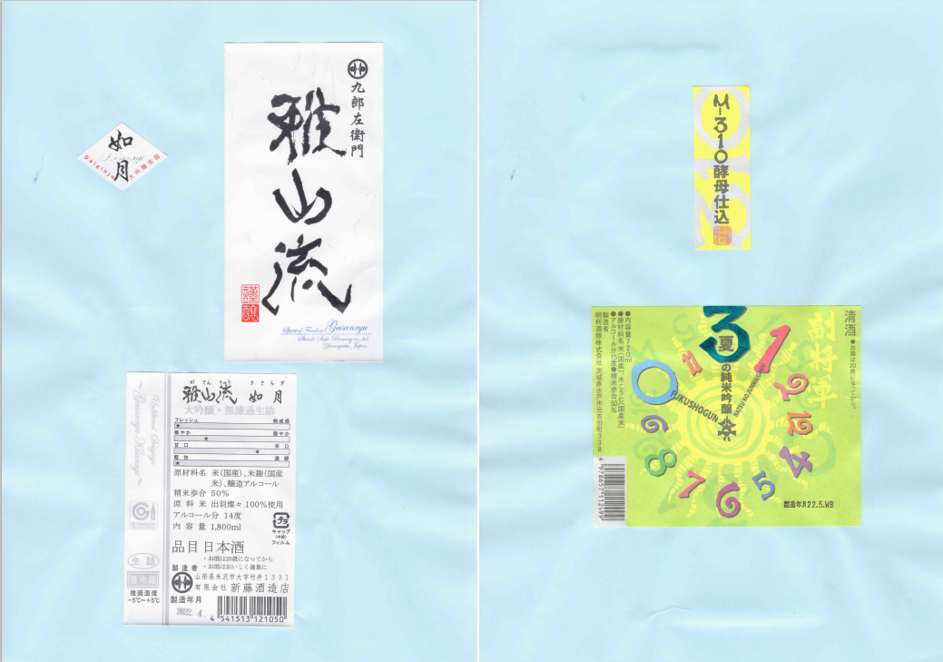 「酒の間」の新藤酒造店「雅山流」ラベルと明利酒類「副将軍」ラベルを追加しました。