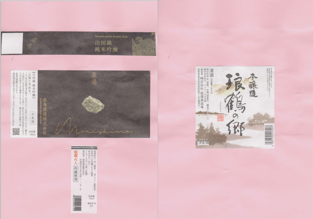 「酒の間」の森島酒造「森嶋」ラベルと尾澤酒造場「十九」ラベルに追加しました。