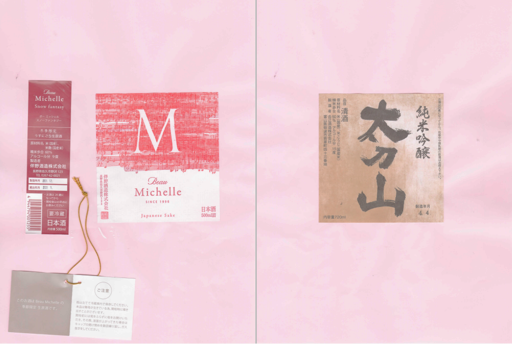 「酒の間」の伴野酒造「澤乃花」ラベルと吉江酒造「太刀山」を追加しました。