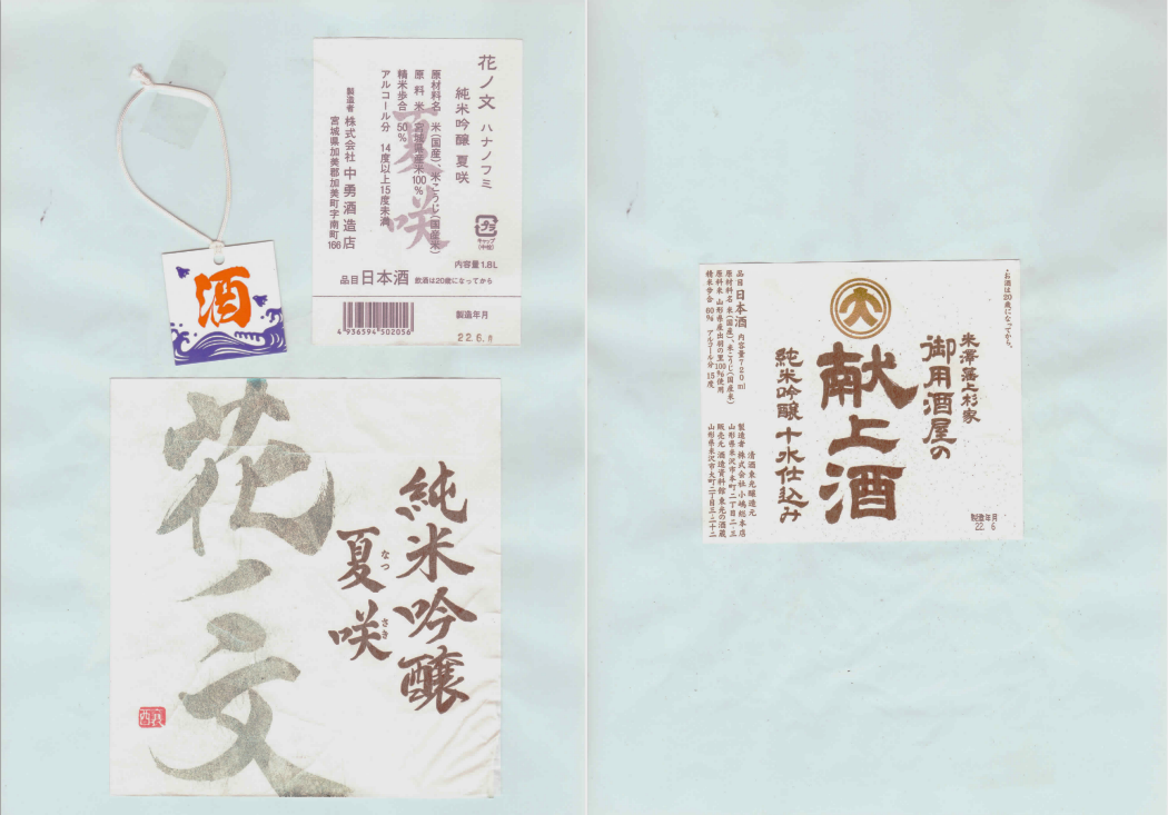 「酒の間」の中勇酒造店「花ノ文」ラベルと小嶋総本店「東光」ラベルに追加しました。