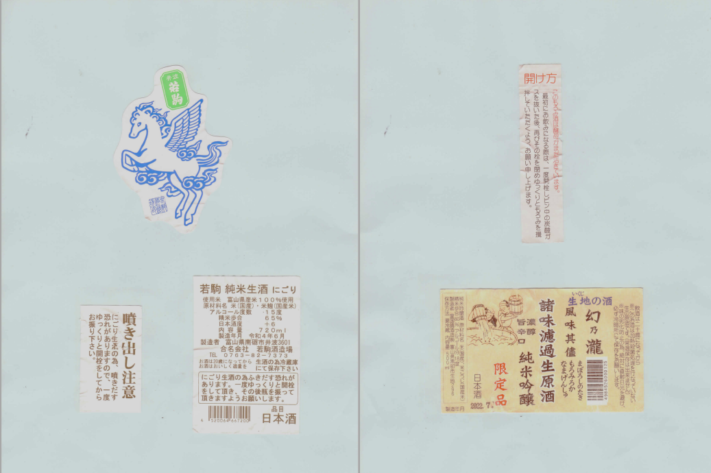 「酒の間」の若駒酒造場「若駒」ラベルを追加、皇国晴酒造「幻の瀧」ラベルに追加しました。