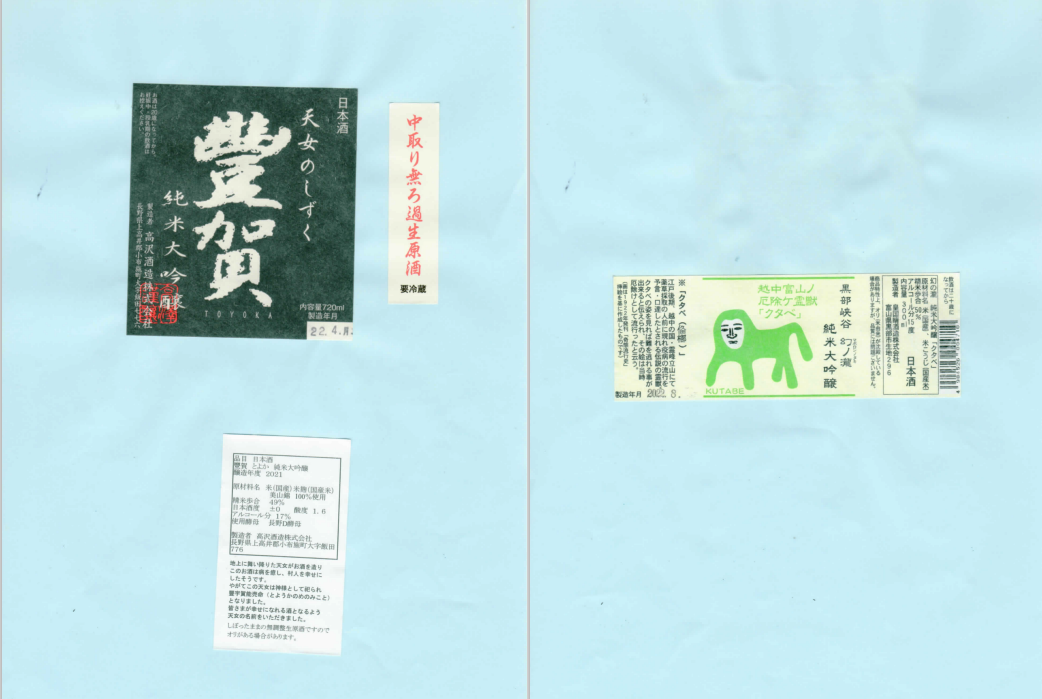 「酒の間」の高沢酒造「豊賀」ラベルを追加、皇国晴酒造「幻の瀧」ラベルに追加しました。
