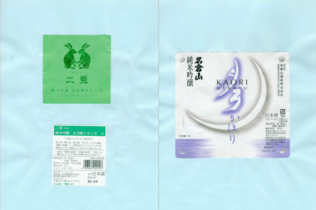 「酒の間」の丸石醸造「二兎」ラベルに追加、名倉山酒造「名倉山」ラベルを追加しました。