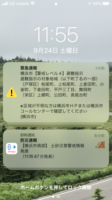 昨日、地震とコロナ関係以外で初めて緊急速報が届きました。