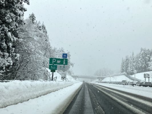 途中、「新井PA」で冬タイヤのチェックを受け通過。
