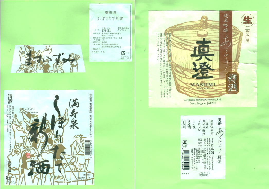「酒の間」の桝田酒造店「満寿泉」ラベルと宮坂醸造「真澄」ラベルに追加しました。